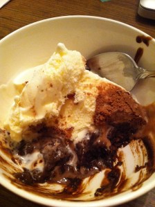 I picked Slow Cooker Chocolate Cake from Recipe Shoebox, who found it in a Betty Crocker Book. This cake was very easy to make, and super delicious. The hardest part was waiting for the 30 minutes after cooking to end so we could dig in. Vanilla ice cream is essential to this dish.